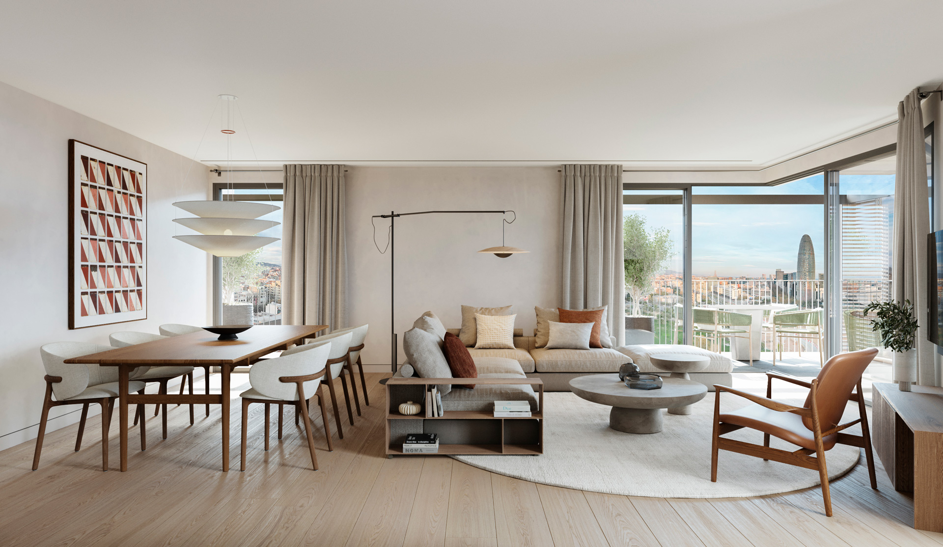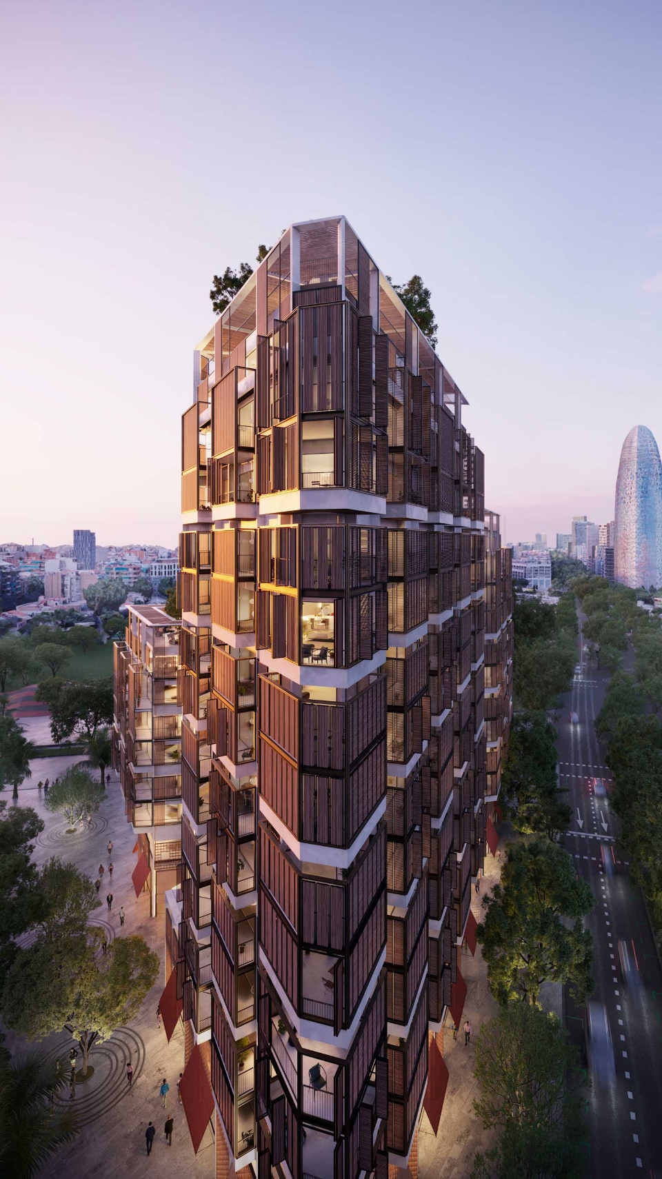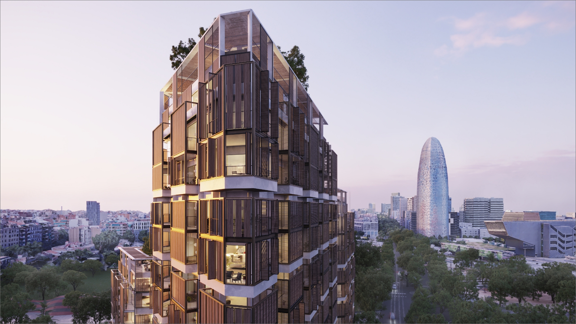 Donde el Eixample y la Avenida Diagonal se integran en la Plaza Glòries frente al pulmón verde del Parque Clariana.